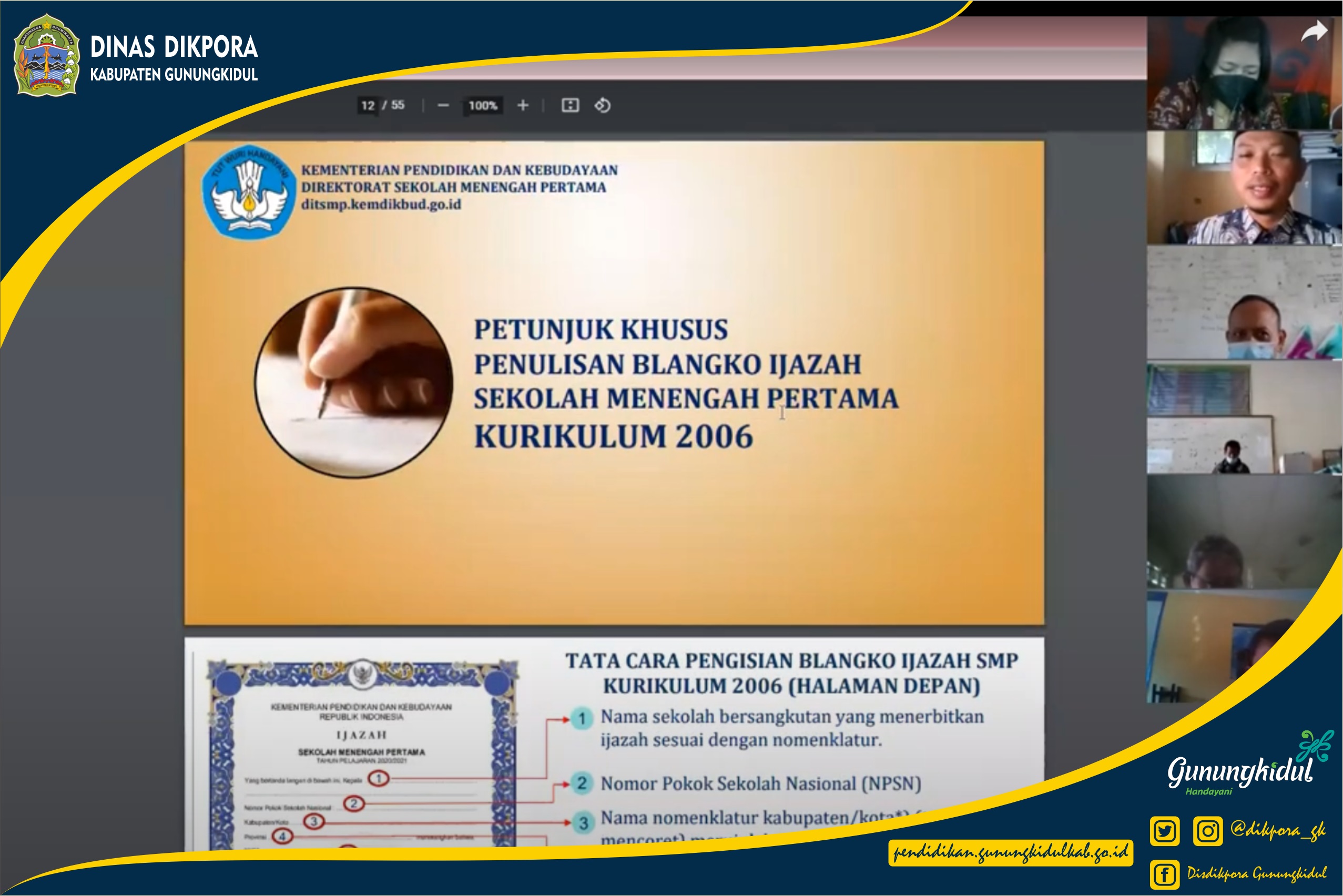 Sosialisasi Penulisan Blanko Ijazah SMP Tahun Pelajaran 2020/2021